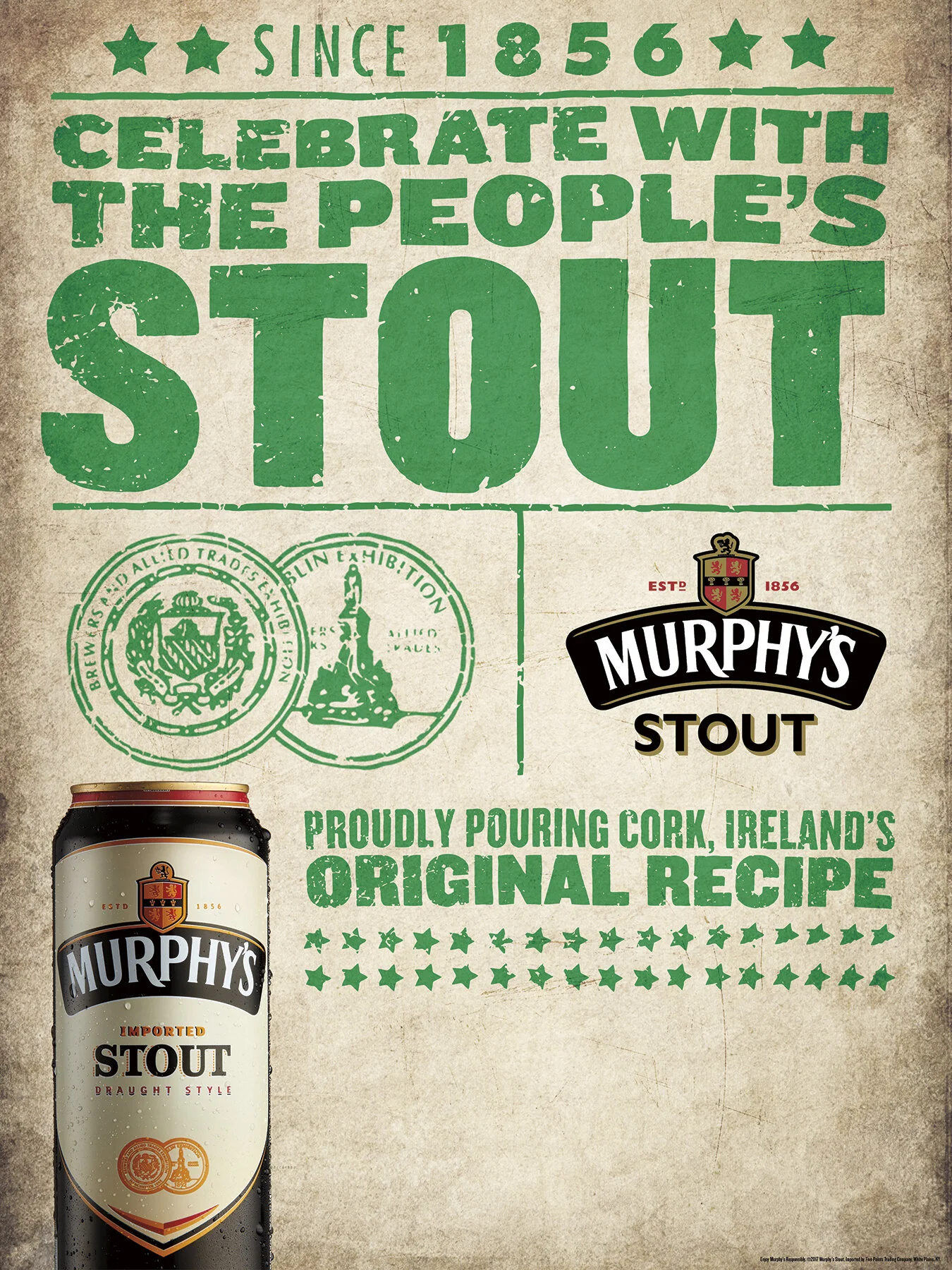 With a stout dating back to 1856, Murphy’s wanted to tap into its brand’s history for its arrival in the U.S. Since Murphy’s isn’t as well-known as other stouts, we had the unique opportunity to start fresh and make the design look different than anything else on the market, to help the brand stand out. This visual imitates old boxing posters to highlight the fighting spirit of Ireland and Murphy’s. To add to the vintage feel, I hand distressed the type and design to make this look really come to life. This came to life in two waves, a generic version for all markets, followed by a St. Patricks Day specific look surrounding the holiday.